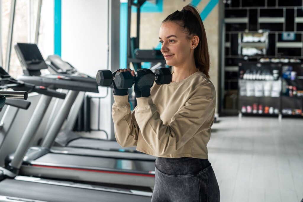 Exercícios como agachamento, stiff, supino e remada são fundamentais para construir uma base sólida. Caso ainda não se sinta segura o suficiente para exercícios multiarticulares, opte pelos aparelhos, como cadeira extensora, supino na máquina, mesa flexora ou remada na máquina.