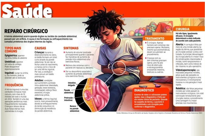 No Brasil, o procedimento aberto ainda é o mais comum para hérnias da parede abdominal — que incluem a inguinal — no Sistema Único de Saúde (SUS). Um levantamento da Sociedade Brasileira de Hérnia e Parede Abdominal (SBH) mostra que, em 2023 e 2024, somente 0,62% das 685.698 cirurgias efetuadas pelo SUS foram minimamente invasivas. Porém, as cirurgias laparoscópicas para o reparo da hérnia inguinal pediátrica estão avançando no mundo, segundo os pesquisadores do Hospital Universitário de Pequim. Essa foi a modalidade realizada em 81,19% dos pacientes incluídos no estudo publicado na Scientific Reports, sendo que, na faixa de até 3 anos, correspondeu a 96,77% dos procedimentos.