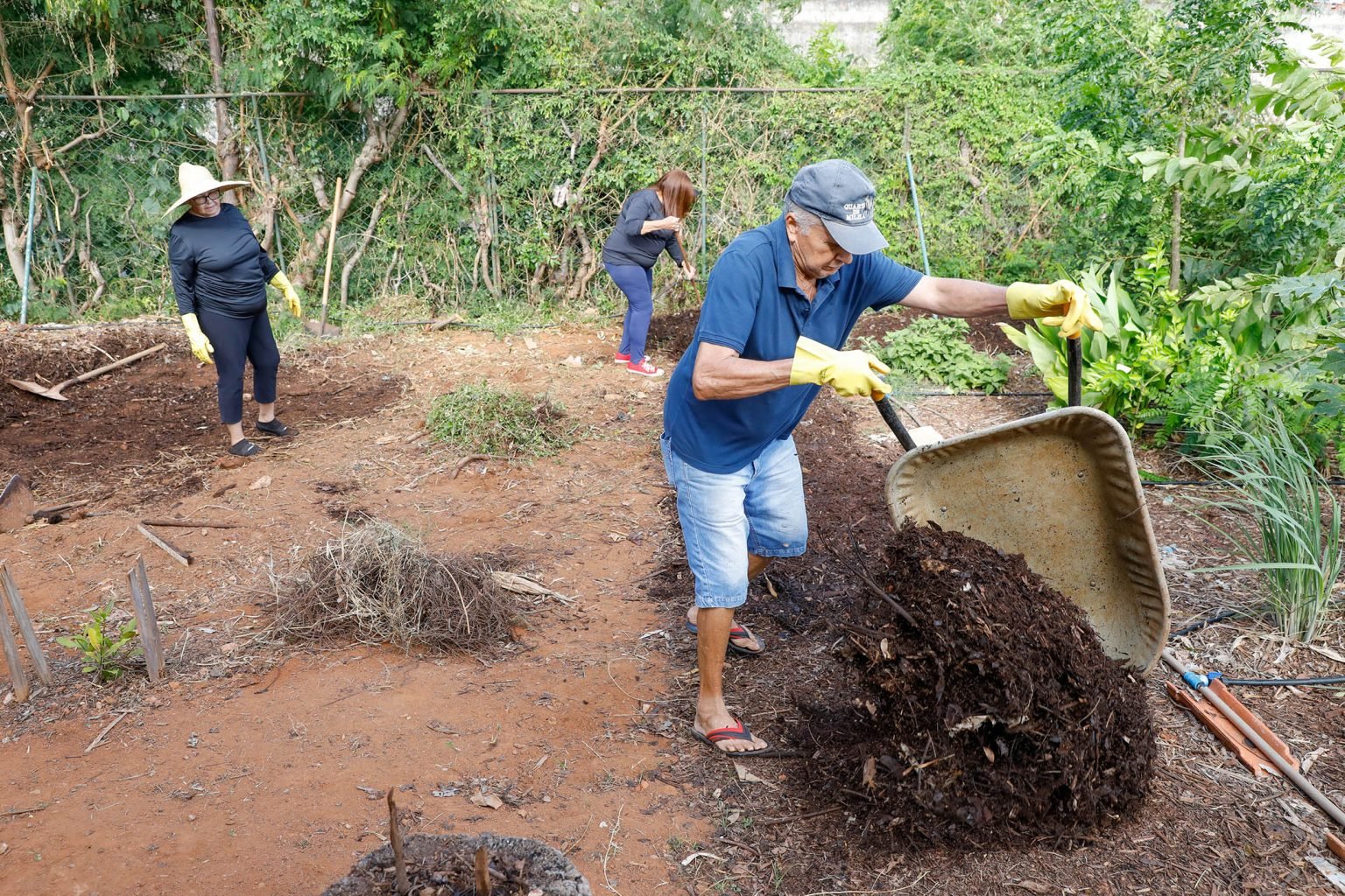 Esse é o caso da aposentada Marizete Lobo Batista, 68, que foi encaminhada à UBS para fazer atividades físicas após ter sido diagnosticada com depressão e pressão alta. Chegando a pesar mais de 100 kg antes de começar a trabalhar na horta, atualmente ela conta com a pressão estabilizada e o peso controlado, descrevendo o trabalho diário e voluntário no espaço verde como uma salvação para melhorar as condições de saúde.
