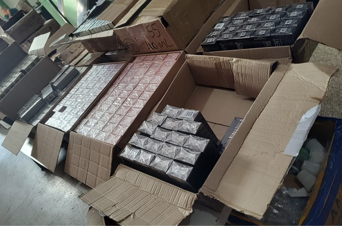 Uma pessoa foi presa em flagrante pelos crimes de uso indevido de marca, concorrência desleal e crime contra as relações de consumo. Os investigados ainda podem responder por receptação qualificada, associação criminosa, lavagem de dinheiro e, caso seja comprovado risco à saúde dos consumidores, também pelo crime previsto no artigo 273, §1º-A do Código Penal.