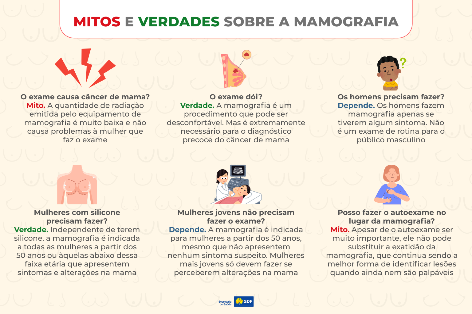 Para esclarecer as principais dúvidas relacionadas à mamografia, Farid Buitrago, Referência Técnica Distrital (RTD) em mastologia da Secretaria da Saúde (SES-DF), separa o que é verdade ou mentira sobre o exame — um dos mais significativos para obter o diagnóstico precoce de câncer de mama.