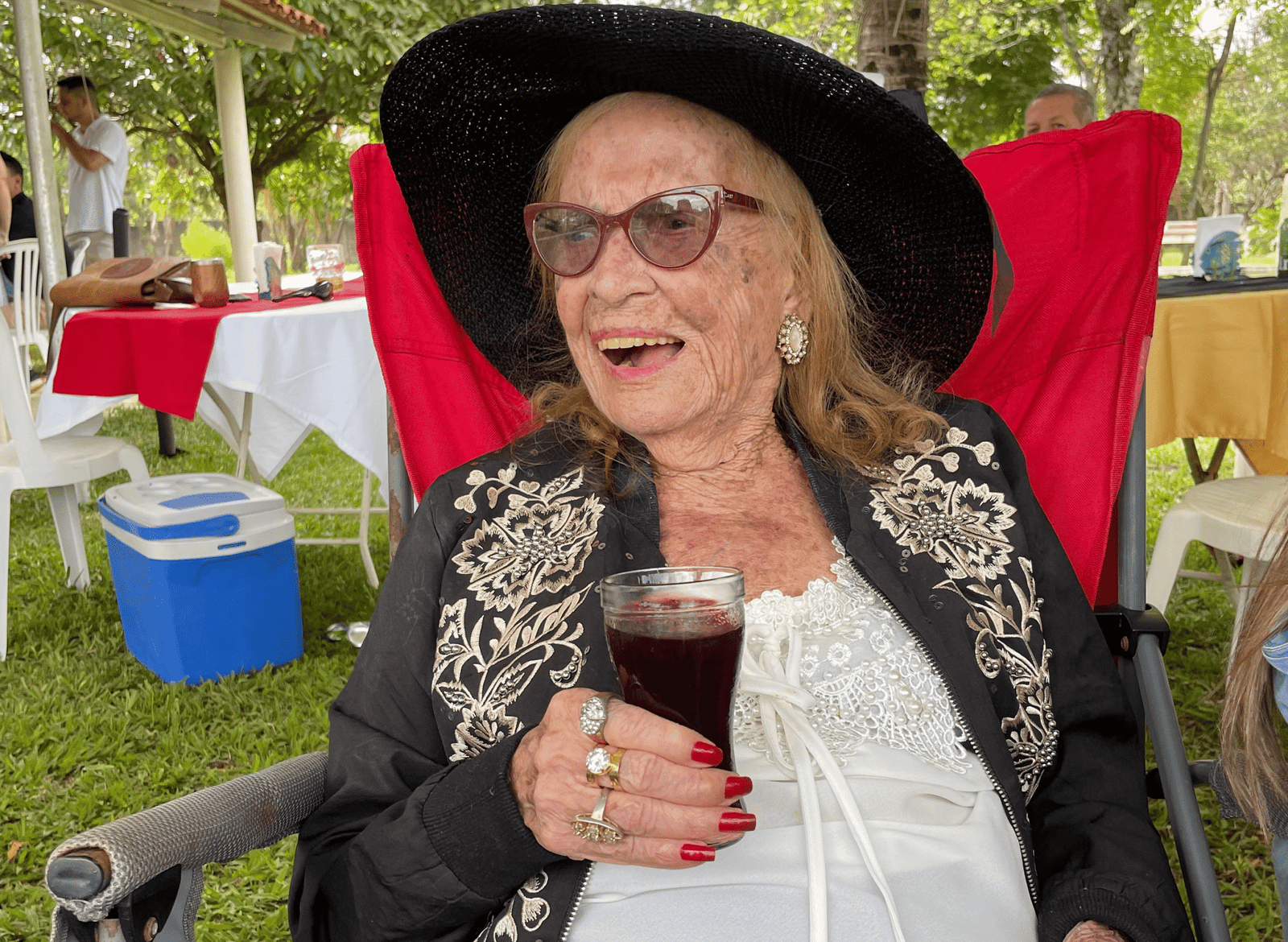 Mesmo lidando hoje com sinais de demência, Dona Pifa segue vital: canta, recita poesias, recebe o carinho da família e garante que o segredo da longevidade é simples, alegria de viver.