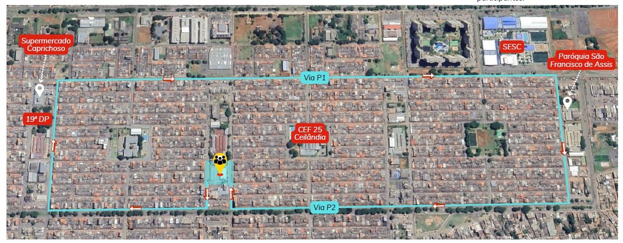 Em Ceilândia, os fiéis se concentrarão na Paróquia São Marcos e São Lucas, localizada na EQNP 09/13, a partir das 7h30 de domingo (13). Cerca de três mil pessoas devem seguir pela via P2 até o final da QNP13, subindo pela EQNP 13/17 em direção ao Supermercado Caprichoso, de onde acessam a via P1 até a EQNP 01/05 em direção à Capela São Francisco, de onde acessarão novamente a via P2 de volta à Paróquia São Marcos e São Lucas. A expectativa é que o trânsito seja impactado até as 10h. Agentes do Detran-DF em uma viatura de quatro rodas e duas motocicletas acompanharão a procissão e farão as intervenções necessárias durante o trajeto.