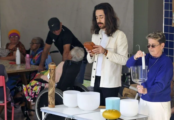 Durante a prática, os dois voluntários organizam os idosos em uma roda e disponibilizam instrumentos para que eles possam interagir livremente com os sons, criando uma conexão inicial com a música. “Depois, iniciamos a sessão de Sound Healing e, ao final, abrimos espaço para a conversa e pedimos que cada participante escolha uma canção para ouvirmos juntos. É nesse momento que muitos começam a cantar, se emocionar e expressar alegria”, relata o consultor jurídico.